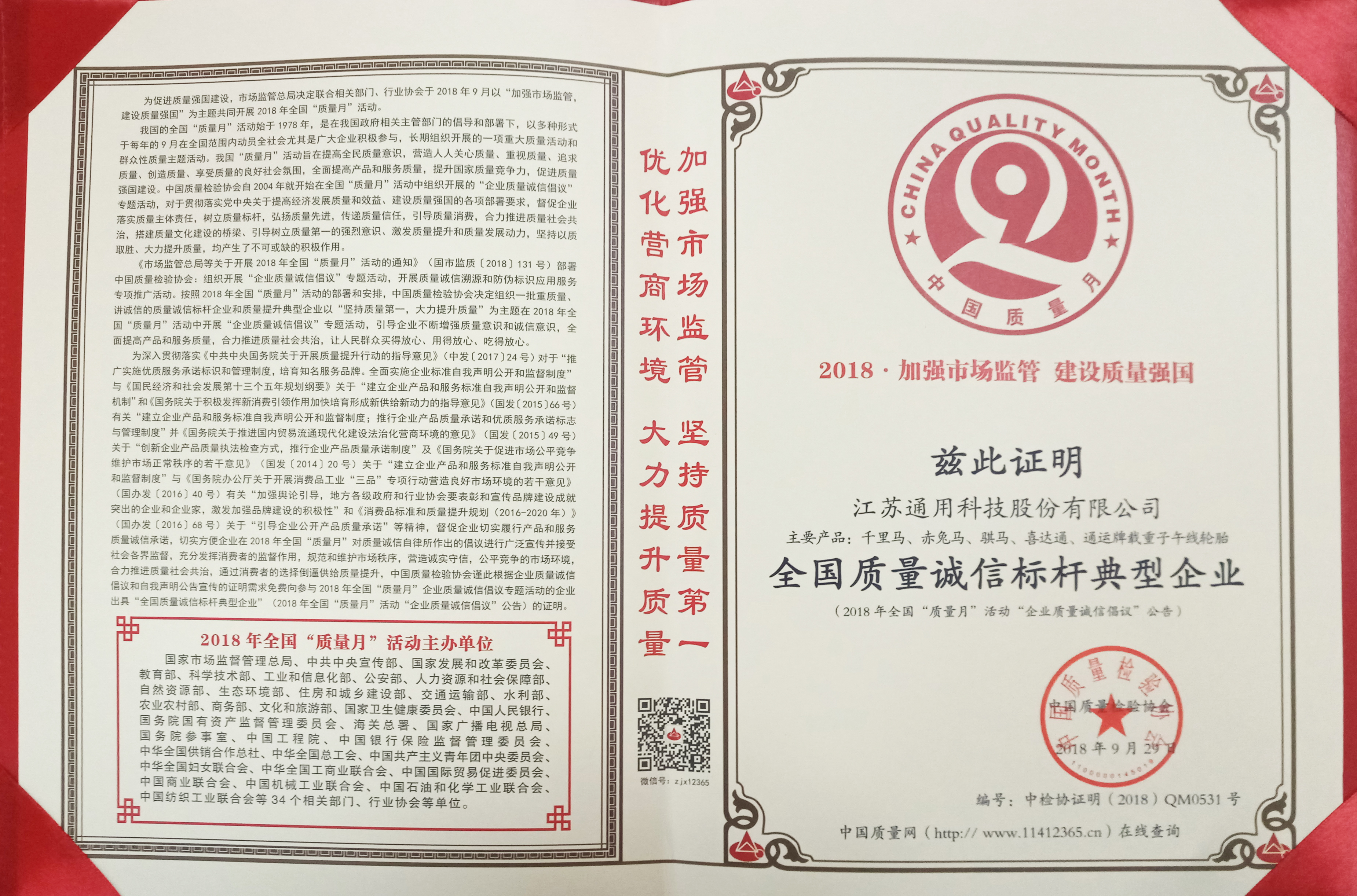 近日,由國家市場監(jiān)督管理總局聯(lián)合中共中央宣傳部、國家發(fā)改委等相關(guān)部門和行業(yè)協(xié)會等34個單位共同主辦的2018年全國質(zhì)量月活動在全國