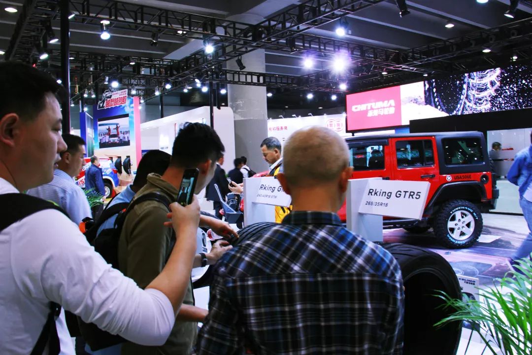 此次展會,通用股份展臺設計以標志性品牌顏色——藍色為主題調,深藍、淺藍的搭配使展廳整體色系統一、層次鮮明,凸顯了通用股份科技、創新、未來的產品設計理念。除了差異化的產品展示,一輛裝配了赤兔馬輪胎新品YUNCHANG M/T CMT8的紅色越野車屹立在展臺中央,強烈的視覺沖擊格外引人注目,吸引了觀展人士的廣泛關注。