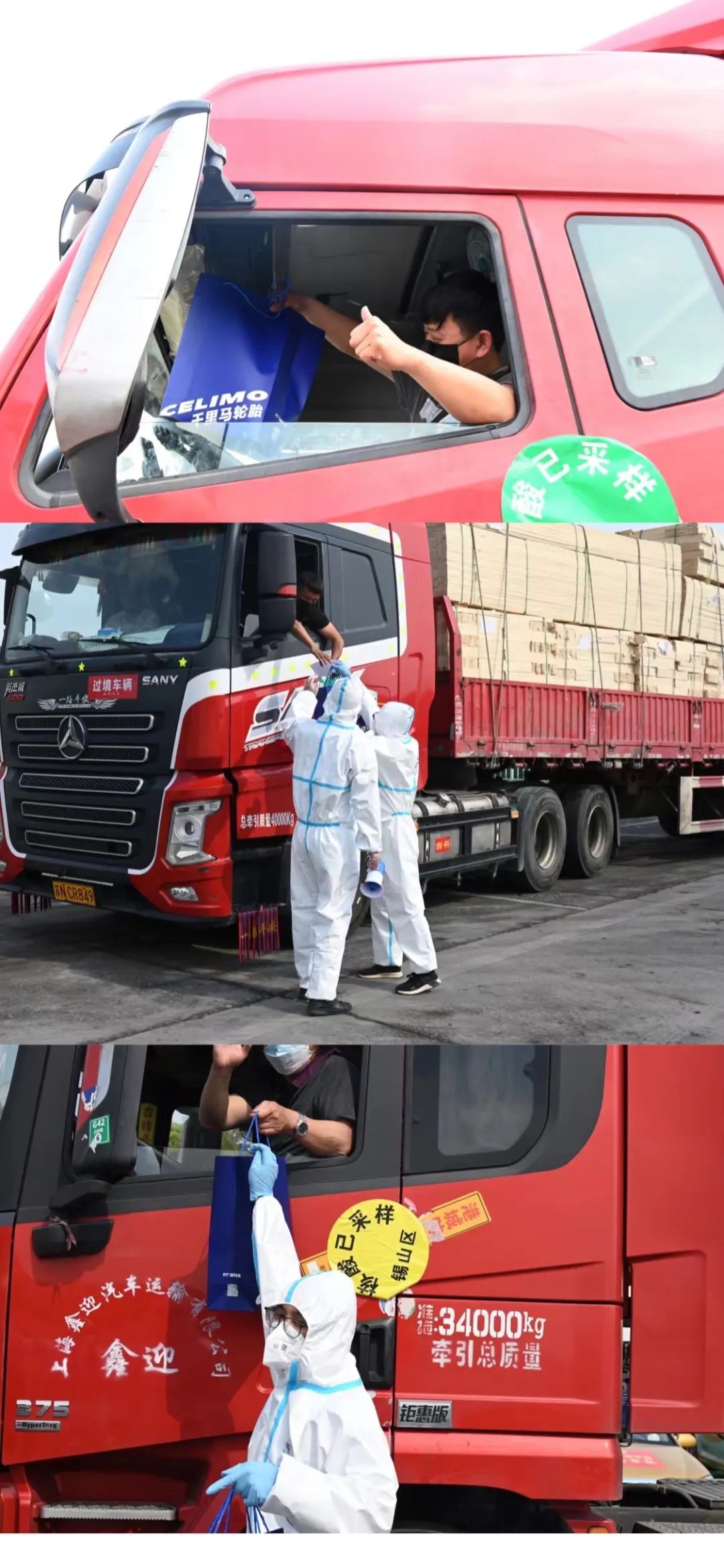4月12日,通用股份志愿者,前往無錫高速公路羊尖路口和服務區,為貨車司機、愛心車隊司機和一線工作人員送去了愛心禮包,向他們致以敬意和衷心的感謝,同時,為卡車司機師傅們全力保障貨運物流暢通貢獻出一份力氣量!有這么一群人