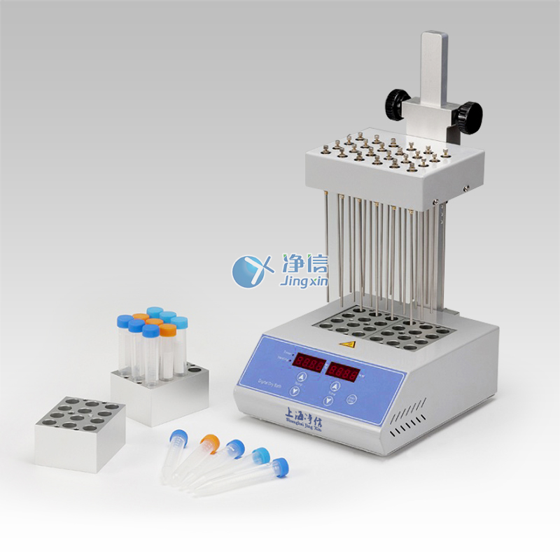 JXDC-400系列氮氣吹掃儀是采用微電腦處理和PID控制方式結合而形成的高精度溫度控制儀器, 其工作原理是將氮氣快速、連續、可控地吹到加熱樣品表面,根據被濃縮溶劑的蒸發速度和沸點,設定加熱溫度,實現大量樣品的快速濃縮。