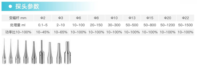 超聲探頭采用美標TC4材質的高純鈦合金,探頭形狀:錐形、鞭節形,發波形式:垂直超聲